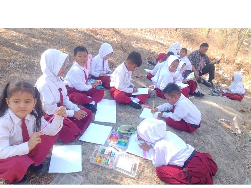 Menggambar dan Mewarnai hasil gambar di luar kelas